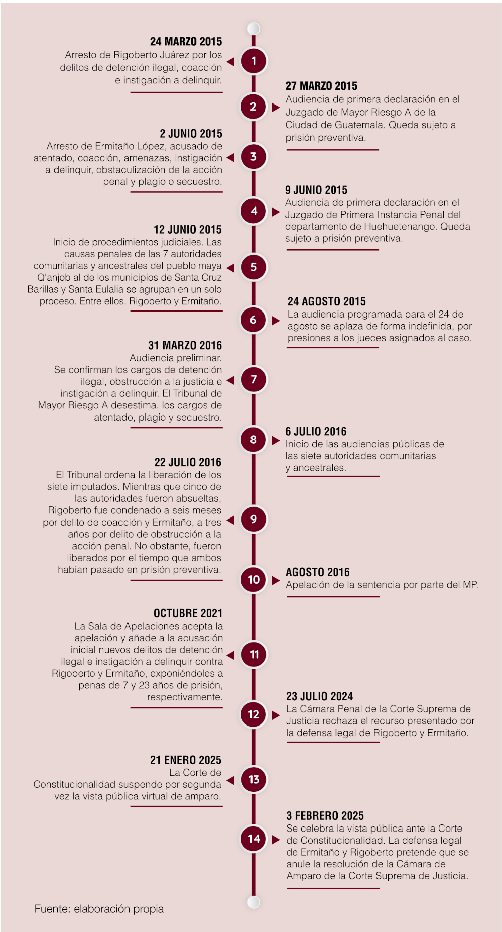 7 Villatoro, D., La espera de los líderes comunitarios en prisión: ¿criminalización o justicia?, Plaza Pública, 11.04.2016.
